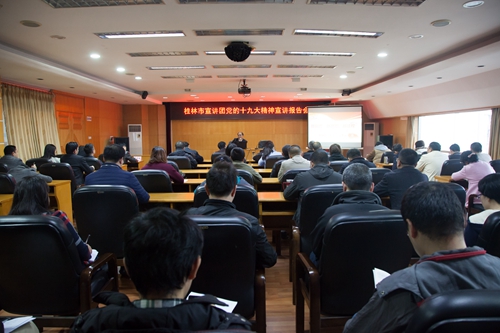 11月29日上午,桂林市党的十九大报告宣讲团成员、桂林理工大学马克思主义学院党委书记、教授、硕士生导师王青山到市科技局宣讲十九大精神。局机关以及局属二层单位80多名党员干部聆听了宣讲。